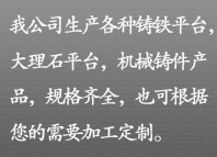 全意鑄鐵平臺(tái)平板廠家專注生產(chǎn)T型槽鑄鐵平臺(tái),大理石氣浮實(shí)驗(yàn)石平臺(tái),han接鑄鐵平臺(tái),裝配鑄鐵平臺(tái),檢測測量大理石平臺(tái),試驗(yàn)鑄鐵平臺(tái),測量大理石平板,T型槽平臺(tái),電機(jī)試驗(yàn)平臺(tái),三坐標(biāo)測量平臺(tái)等鑄鐵平板來圖加工定做業(yè)務(wù),以合理的價(jià)格,專注的技術(shù)服務(wù)于國內(nèi)外客戶,互利合作,共同發(fā)展!公司位于河北交河開發(fā)區(qū),京滬鐵路、104國道、106國道、京福高速公路橫穿而過,與我國的兩大直轄市北京、天津近在咫尺,地理位置優(yōu)越,交通非常便利。我公司本著以誠納客”“嚴(yán)把質(zhì)量關(guān)”“價(jià)格優(yōu)惠”“用戶至上的原則,幾十年兢兢業(yè)業(yè),受到用戶的一致好評(píng)!